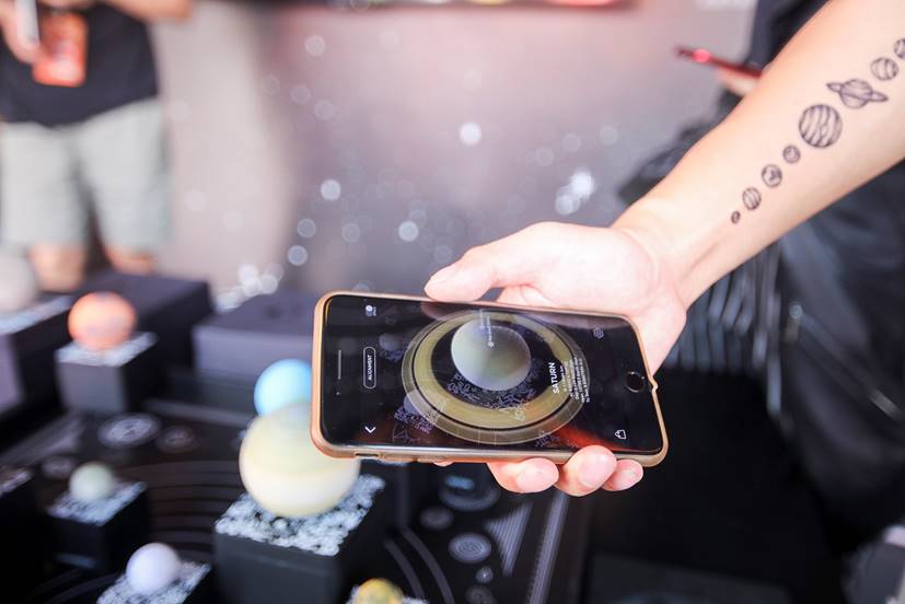 在科幻周边领域,AstroReality也发挥了这方面的技术优势。此次火爆的《流浪地球》授权马克杯,外形结合中国古代对“太空飞船”的幻想和描述,更神奇的是,用手机APP扫描一下,杯中就会出现一个地球——从卫星轨道上看到的地球。可谓是名副其实的“带着地球去流浪”。