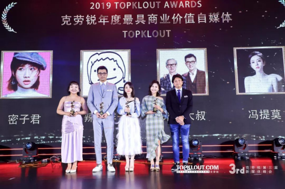 从2017到2019,克劳锐不仅见证了新媒体行业的发展大势,更记录了每位新媒体人的辛苦与汗水。2019大势发声TOPKLOUT AWARDS颁奖盛典,共颁发了“年度最具社交影响力品牌TOP3”、“年度最佳新媒体社交营销案例(金银铜奖)”、“年度最具商业价值MCN”、“年度最具价值电商红人”等20多类、200余个奖项。