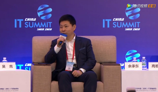 3月31日,2019中国(深圳)IT领袖峰会召开。数字中国联合会主席吴鹰作为主持人,华为消费者业务首席执行官余承东,中电信方舟基金管理公司总经理高宏亮,宽带资本董事长田溯宁,达闼科技创始人、董事长兼首席执行官、前中国移动研究院院长黄晓庆作为嘉宾,进行了主题为“5G时代:未来通信颠覆性创新”的高端对话。