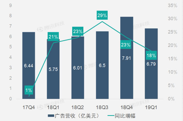 Twitter第一季度广告营收为6.79亿美元,比去年同期增长18%,按照固定汇率计算同比增长20%。Twitter第一季度广告营收超出公司此前预计的7.15亿美元至7.75亿美元。从产品上看,视频广告格式继续显示出优势,尤其是Twitter的Video Website Card广告和瀑布流滚动广告。