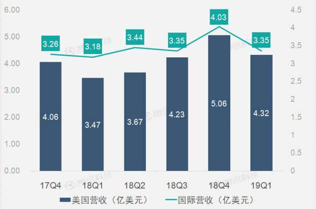 Twitter第一季度美国营收为4.32亿美元,比去年同期增长25%。Twitter第一季度国际营收为3.35亿美元,比去年同期增长11%,按照固定汇率计算同比增长15%。