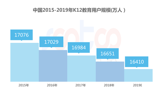 根据中国K12教育用户规模数据显示,2015年为17076万人,2016年下降到17029万人,在多方因素的影响下,K12教育用户不断下降,但用户规模依旧很庞大,这给K12在线教育的发展夯实了基础。
