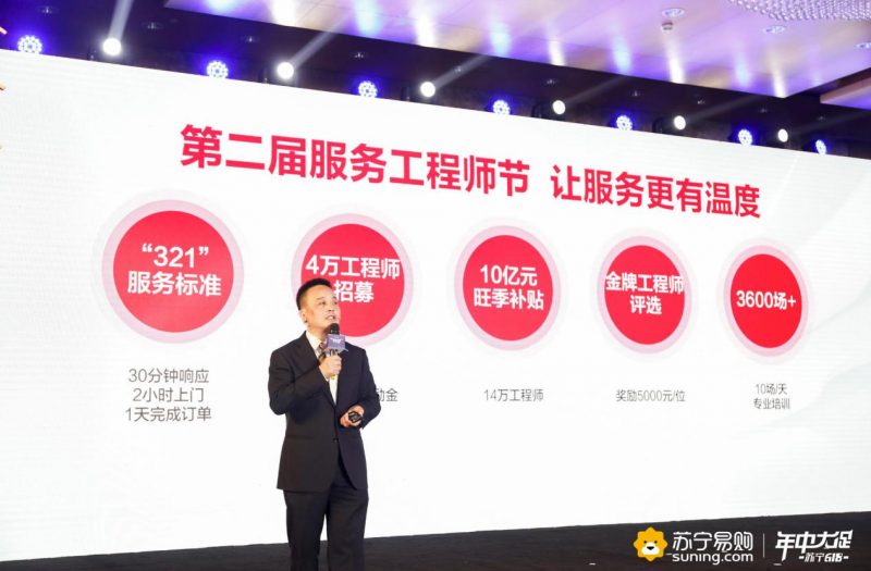 好服务,成苏宁618重头戏。侯恩龙介绍,目前,苏宁在全国有10万名服务工程师,今年会再扩招4万精兵,为消费者提供无忧的高质量售后服务,严格按照30分钟响应、2小时内准时上门、1天内完成订单的“321”服务标准,对乱收费等行业乱象说不,击碎行业潜规则。此外,成功推荐服务工程师,可获得推荐奖励金。