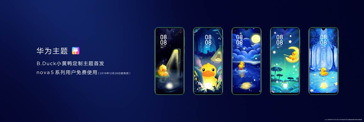 伴随华为nova 5系列的发布,全新升级的品牌logo也进入大众视野。字体换新后的品牌logo营造出更舒展自由的空间感,为品牌注入更强烈的时尚张力,也代表nova系列对年轻人“不止一面”深层诉求的真诚回应。华为主题通过百变锁屏、个性化图标及数万在线主题,以缤纷多样、质感十足的设计让nova星人体验每天换新机的奇妙感受,彰显多元生活的理念和态度。在新品发售的同时,华为主题为nova 5系列用户量身定制了B.Duck小黄鸭动态主题,nova 5全系用户可在2019年12月28日前限时免费下载。作为代表着潮流、玩味、百变的爆款IP,B.Duck小黄鸭与走在创新流行前沿的华为nova系列将迸发出独具趣味的时尚火花,贴近当下年轻人群对新奇潮流的追求。华为主题还将于近期推出三山五园-颐和园等一系列国风主题,将现象级传统文化IP与潮酷科技结合,挖掘精品内容,升级用户的个性化体验,让用户感受国风韵味的深厚历史底蕴和鲜活生命力。