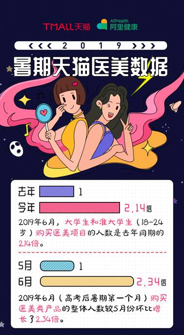 数据显示,今年6月中旬,随着高考和暑期正式拉开序幕,天猫上购买医美类产品的整体人数环比5月增长了2.34倍。