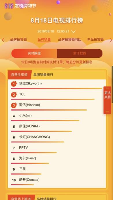 创维、海信和TCL仍然备受追捧,在品牌销量、品牌销售额、单品销售额等多个榜单中均排名前列。值得一提的是,康佳和小米分别凭借着一款性价比电视成为榜单黑马,冲进单品销量和单品销售额榜单的TOP10。