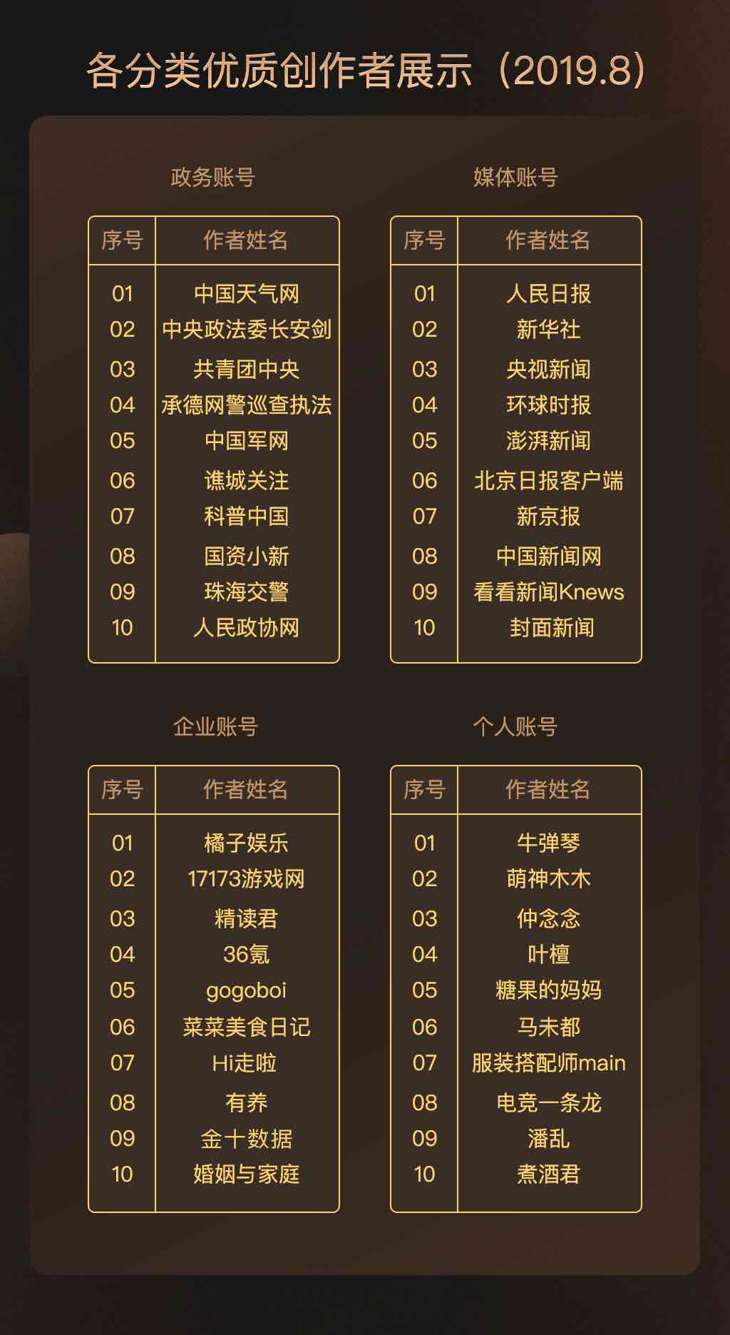 在内容上,百家号呈现出明显的权威化、优质化和多元化的特征。比如,在优质媒体账号创作者中,人民日报、新华社、央视新闻、环球时报、澎湃新闻、北京日报客户端等皆在其中;在优质个人类账号中,则包含了牛弹琴、叶檀、马未都、潘乱等不同领域的优质作者。