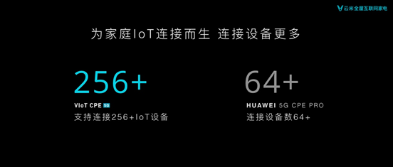 目前的家庭IoT网络架构基本由WiFi、蓝牙、ZigBee等多个协议、多个网络终端组成,拥有不同的接发信号终端,设备与设备之间的云端相连运算和响应速度受限,无法真正高效实现全屋智能家电的互联互通。VIoT 5G CPE,全球第一款混合网络5G CPE,专为家庭 IoT连接而生,支持4G、5G或者有线宽带混合组网,享千兆带宽体验。最为关键的是独创One Touch一键自动组网,可以一键搞定多设备联网,可支持连接256+IoT物联网智能设备,远远超过HUAWEI 64+设备接入,同时能够保证当局域网内设备过多时,设备接收到的无线信号依然保持时刻通畅,长时间稳定运行。