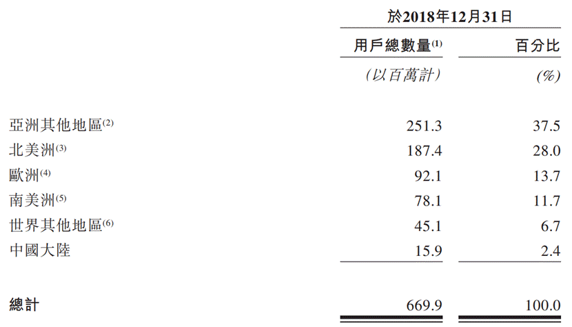 赤子城已完成一定规模的全球布局:亚洲(除中国大陆)用户2.7亿,占比34.4;北美用户2.3亿,占比28.9%;欧洲、南美洲分别有1.1亿、0.9亿,占比 13.2%、11.4%。既覆盖代表当下的发达国家,也覆盖代表未来的新兴市场。