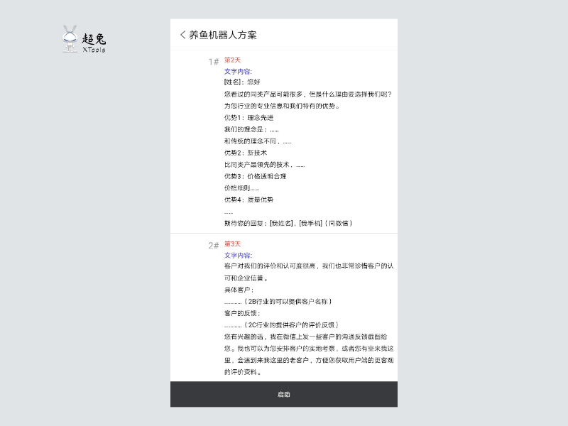 它以微信、QQ、邮件、短信为手段,通过持续的、提供价值的文字影响,引导和培养潜客的需求,待出现正反馈,就能逐步加大跟单力度,推动到商务跟进。养鱼机器人背后有两个重要逻辑,保证了线索挖掘的科学性:①跟进步骤的时间分配模拟人工。②集中管控,分布式执行,销售利用碎片化时间就可以完成“养鱼”操作。