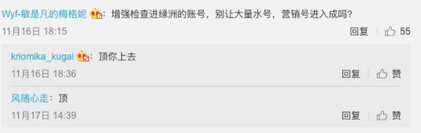 而这,也是第二个问题。“微博互补品”的定位,让绿洲用户对广告敬谢不敏。在绿洲官方微博的评论中,不乏有用户建议不要在绿洲中存在广告。想要在绿洲投放广告,还要看用户是否愿意买单。