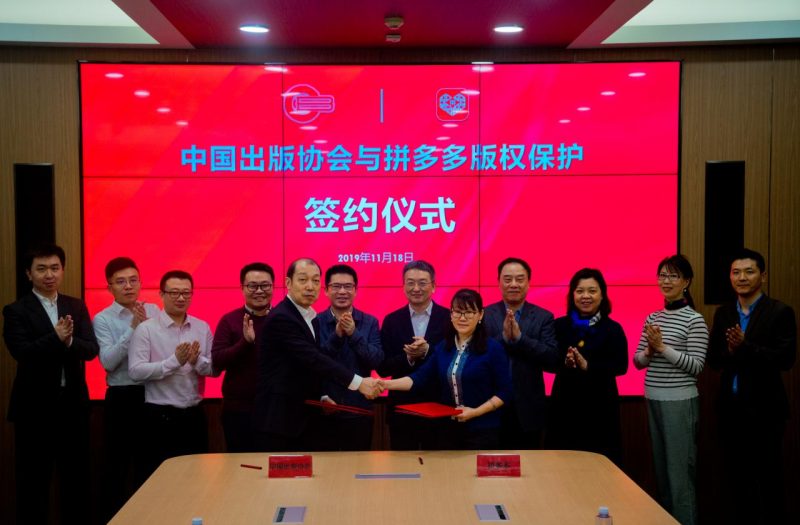 速途网11月18日讯(报道:乔志斌)今日,通过国家版权局协调指导,中国出版协会与新电商平台拼多多在上海正式签署《知识产权保护合作协议》,双方将在完善知识产权保护合作机制,协助处理盗版侵权行为和促进电商图书销售等领域展开深入合作,共同推动出版行业健康、有序发展。