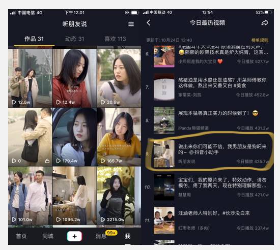 正是通过“加减法”的不断衡量和取舍,在不到一个月的时间,“听朋友说”就出了2条爆款内容,最高播放量2000多万,点赞超90万,成功占据抖音当日最热视频TOP9。“用心做好内容,这一点支持我们从0走到1,也将激励我们一直向前。”王佩总结。