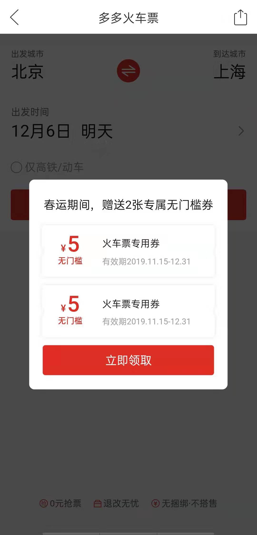 拼多多在App端和小程序上线火车票业务 周勇 • 2019年12月5日 13:58 • 快讯 速途网讯 近日,拼多多在App端和小程序上线了火车票业务。该入口位于拼多多首页—充值中心—火车票,点击进入后页面显示入口名为“多多火车票”。此外,拼多多还为新用户赠送了两张5元无门槛券。 拼多多 赞 (0) 周勇 0 生成海报 《人工智能中国专利技术分析报告》发布,百度5712件位列中国人工智能专利榜榜首 上一篇 2019年12月5日 13:57 OPPO宣布5G手机计划,Reno3 Pro将率先搭载高通双模SoC骁龙765G 下一篇 2019年12月5日 14:04