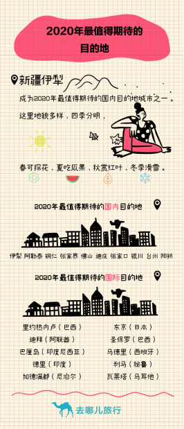 伊犁、阿勒泰、铜仁、张家界、佛山、迪庆、张家口、银川、台州和阳朔成为2020年最值得期待的国内目的地城市。