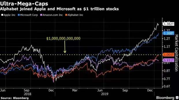 谷歌母公司Alphabet市值首次突破1万亿美元 仙雯 • 2020年1月17日 08:08 • 快讯, 科技 速途网讯 美股周四收盘,谷歌母公司Alphabet股价报1451.7美元,涨0.87%,创历史新高,市值首次突破1万亿美元,成为继苹果、亚马逊、微软之后第四家市值突破一万亿美元的美国科技巨头。 赞 (0) 仙雯 0 生成海报 福田汽车:转让宝沃汽车67%股权事宜尚有剩余价款未收到 上一篇 2020年1月17日 08:04 中美大力建设,一些欧洲人却在抗议5G,这么怕辐射? 下一篇 2020年1月17日 08:10