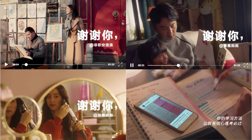 广告片中,高圆圆、雷佳音、欧阳娜娜感谢了包括@非职业流浪、@香蕉妈妈、@加糖的梨、@七兮的学习角等在内的多名创作者,他们发布的出行攻略、亲子相处的日常、卷发小诀窍等笔记都或多或少的帮到他们。