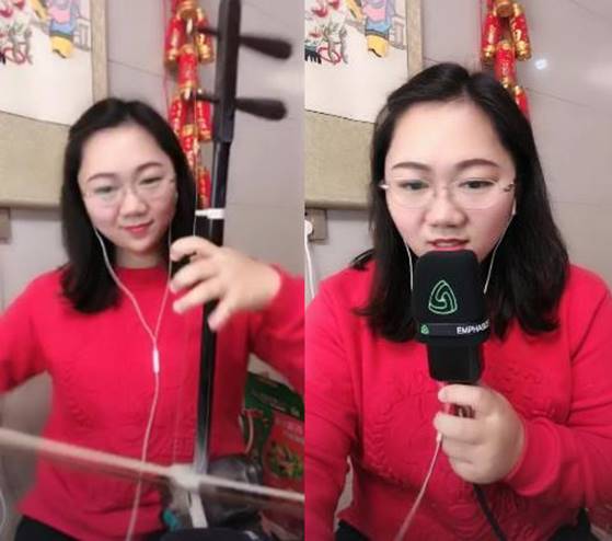 事实上,阿静作为一名在武汉工作的湖南人,自从节前回到家乡后就一直没有出去过,保持自我隔离状态。隔离期间,不同于同样因为新型冠状病毒感染肺炎疫情而自我隔离的部分人的抑郁、焦虑心情,阿静每天都在快手直播,用二胡演奏《江河水》、《花桥流水》、《珊瑚颂》等经典作品,唱歌,和快手老铁互动聊天,用开心的笑容、优美的旋律为网友带来了更多正能量。
