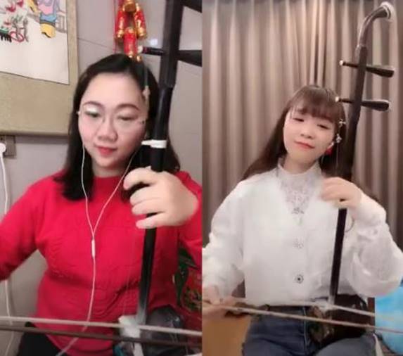 现在,两人都已经是专业的二胡演员,并在快手上因为出色的二胡演奏作品而收获了大量粉丝的喜爱。姐姐阿珊是湖南省京剧保护传承中心国家二级青年京胡、二胡演奏员,目前的快手粉丝数已经达到42.9万;妹妹阿静则是于2013年在武汉音乐学院硕士研究生毕业,目前也已拥有28.3万的快手粉丝。