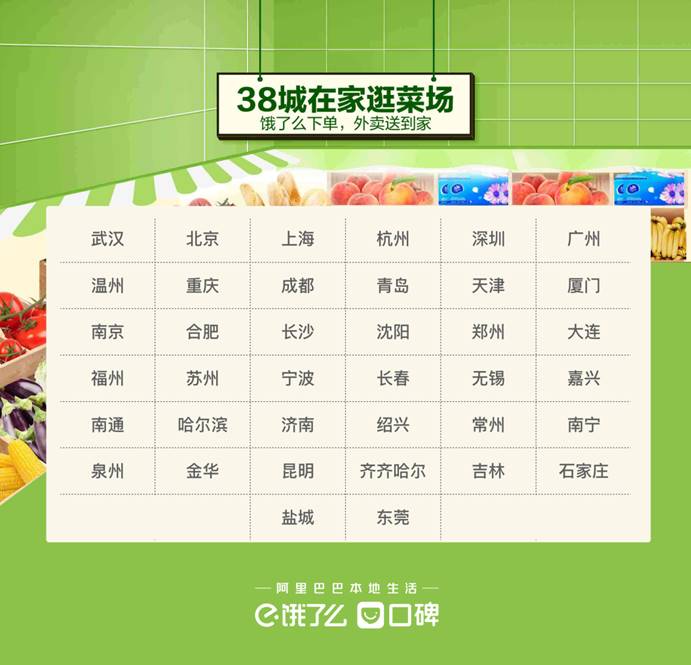 在武汉、北京、上海、杭州等38个主要城市里,一共有近6万家生鲜与商超门店,提供线上买菜、线下配送到家的业务,涵盖蔬菜水果、肉禽水产等多个品类。单个城市平均门店数在1000家以上,覆盖城区大部分地区。随着门店营业率的逐步恢复,覆盖范围还会进一步扩大。“非常时期供给难免出现波动,我们会尽全力保障消费者的需求。”饿了么相关负责人表示。