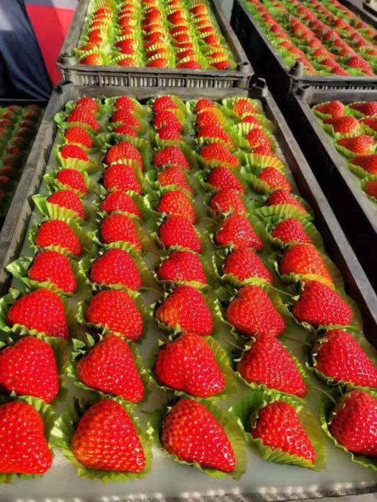 “我们江宁红颜草莓原来是供应到全国各地市场的,往年的1~2月份,我们每天能出产后红颜草莓5万斤。”