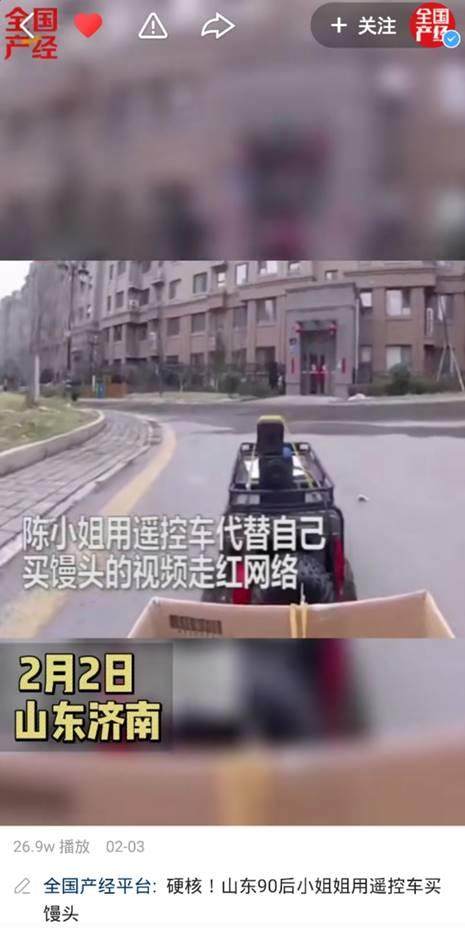 近期,在全国人民万众一心、共抗疫情之时,快手平台上一系列“高能买菜方式”刷爆了社交媒体,例如济南90后小姐姐将遥控车改装上摄像头和语音装置出门买菜、临沂火锅店老板无人机“空投”食材、浙江隔离点机器人送餐……可谓是“方法千万条,吃饭第一条”,引爆了新的买菜时尚。