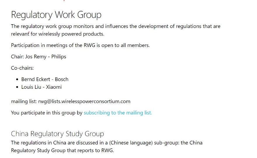 在刚结束的无线充电标准联盟(WPC)2020年第1次全会上,来自小米集团技术委员会标准与新技术部专家刘洋成功当选联盟RWG(Regulation Work Group)联席主席,RWG组共设一位主席和两位联席主席,小米是中国手机公司里唯一有担任主席职位的公司。