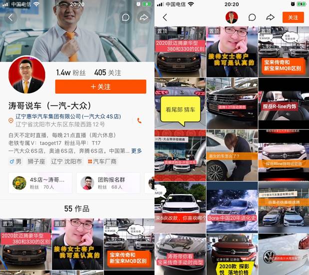 汽车主机厂和经销商开始将目光转移到线上,思考如何发力直播和短视频,在市场整体下行环境中找到新的增长途径和集客渠道。其中,一汽大众已经率先行动,目前仅东北区域就已经有700多个4S店小哥在快手直播说车、卖车,有人通过快手月销20多台。
