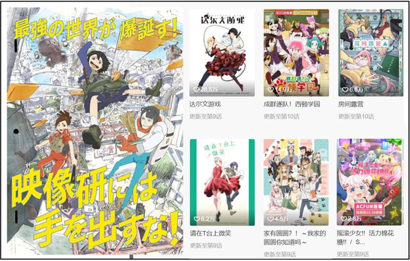 今年1月,A站又拿下7部新番的独播权,其中《别对映像研出手!》豆瓣评分9.6,《达尔文游戏》更新10话就有3700万点击,《成群逐队!西顿学园》交出14万人追番的成绩单,黑马番和霸权番全占。另外,A站将《白箱 SHIROBAKO》等数十部高质量旧番上线,也给了动漫迷们免费重温经典的机会。独播新番+高质量旧番的买番策略,不仅进一步满足了老用户的需求,也吸引来了大批慕名而来的新用户。
