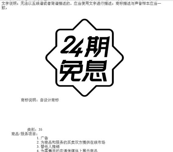 3月12日,中国商标网显示,苏宁易购集团有限公司申请了“24期免息”商标,该商标隶属第35类,广告销售类。目前,“24期免息”商标还处于等待实质审查状态。