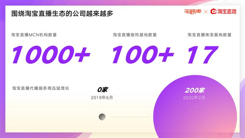 根据淘榜单今天发布的《2020淘宝直播新经济报告》,当前淘宝直播上的MCN机构已经达到1000多家。