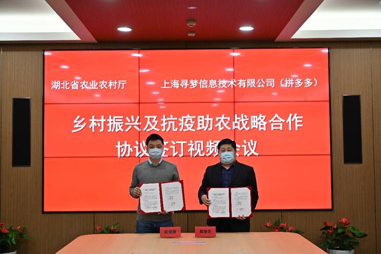 速途网4月1日消息(报道:李楠)为助力湖北农产品迅速流通,方便消费者购买湖北特色农产品,湖北省农业农村厅与拼多多达成战略合作。今日,湖北省农业农村厅与拼多多合作,共同签署了《“乡村振兴及抗疫助农”战略合作协议》。
