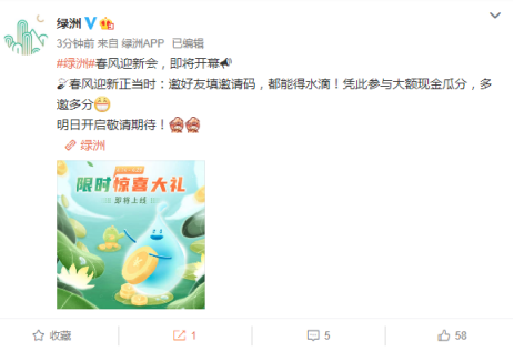 今日,绿洲官方微博发文表示,春风迎新正当时,邀好友填邀请码即可凭水滴参与瓜分大额现金。事实上,这并不是绿洲首次探索现金拉新,据速途网观察,春节期间绿洲也曾有过尝试。
