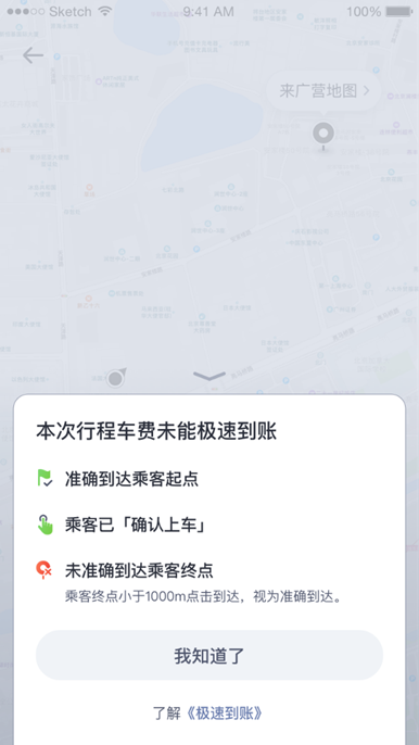 若行程结束后,系统检测到任意一项未完成,顺风车主将提示无法实现“极速到账”。