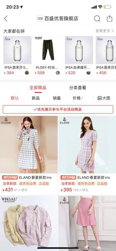 目前,百盛优客已经入驻拼多多开设旗舰店。“五五购物节”期间,消费者能够在线上同步购买百盛优客线下商场在售商品。包括Luxury Gallery(奢嘉),IPSA,ELAND,WhoAU, Anybody等多款品牌商品,覆盖女装、内衣、家居等多个类目尖货,实现“线下逛街,线上下单”,让消费者享受线上线下同样的低价和即时提货的便利。