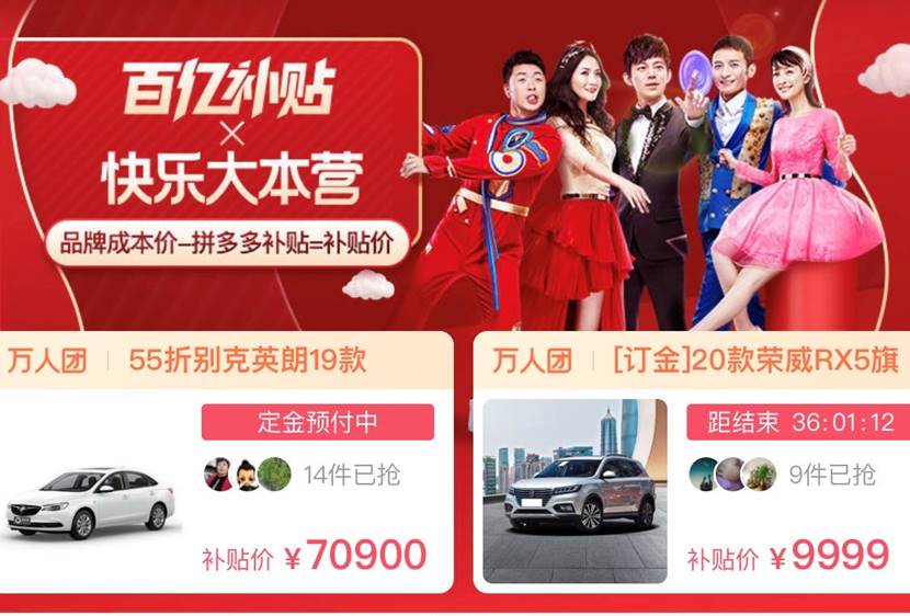 此外,备受消费者关注的拼多多“五五折购车”钜惠活动,也即将在明晚(4日)8点准时开启。首批针对上海地区用户的凯迪拉克XT5豪华版、大众途观、大众途昂等车型,以及面向全国消费者的别克英朗、雪佛兰科沃兹、荣威RX5等热销车型已全部整装待发。