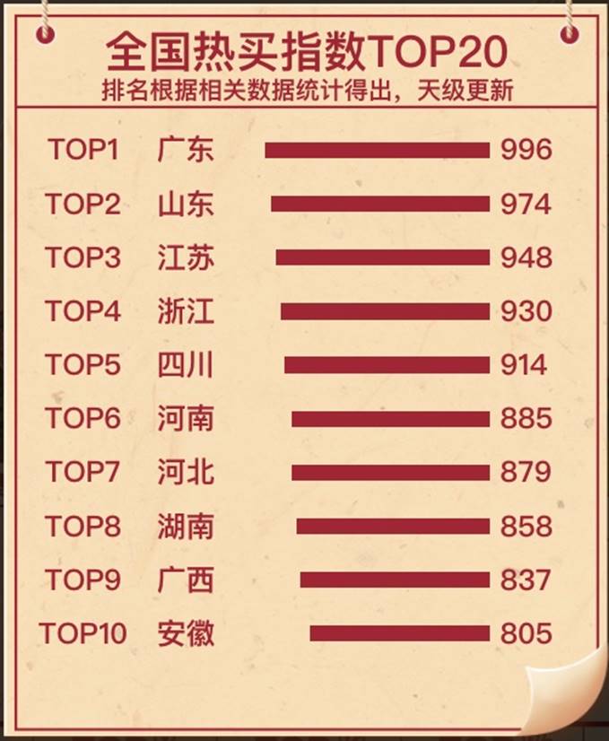 除了关注消费者买什么之外,榜单也统计了货从哪里来。