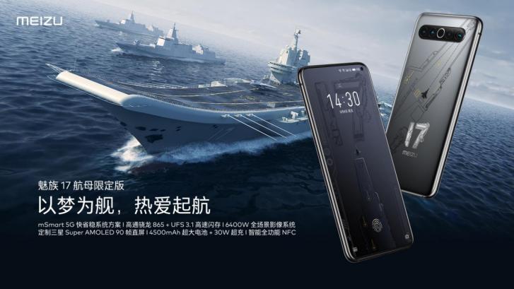 魅族联合中船文科推出「魅族 17 航母限定版」,售价 4299 元,限定 2020 套;此外,魅族还联合晓芳窑推出「魅族 17 Pro 晓芳窑艺术典藏版」,售价 9999 元,限定 50 套。