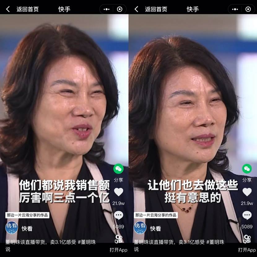 董明珠表示,自己最高兴的不是在快手卖了3.1亿,别人都说自己卖了3.1亿很厉害,但自己觉得还是集体的力量,更重要的是产品支撑,没有产品是不行的。“我希望我这样的一个新名词叫带货,给我们的商家做一个样子出来,让他们也去做这些,挺有意思的。”