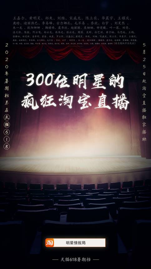 速途网5月27日消息(报道:李楠)今日,天猫618首批明星直播名单公布:300多明星集体上淘宝直播,将掀起史上最大规模的明星开播潮。