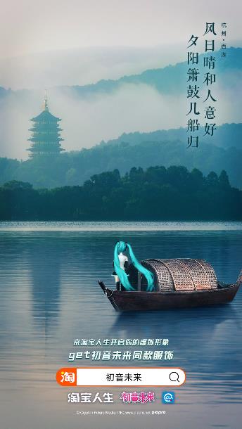 值得注意的是,今天淘宝还发布了初音未来在杭州“游玩”的一系列“照片”,可以想见,“初音未来”将在淘宝上与更多场景结合。
