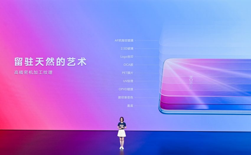 在荣耀夏季5G 新品发布会上还发布了荣耀30系列青春版,荣耀投入高精密机械加工的工艺,将炫光承载于手机玻璃背壳之中,通过足足9层工艺,方才完成这场光影、色彩碰撞和融合的感官实验。