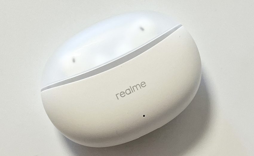 外观方面,真我Buds Air3 Neo的耳机盒的非常独到,鹅卵石形的外盒,下方为雾面磨砂的白色,触感十分亲肤,上半部分更是大胆地采用了半透明的设计,官方称之为“音乐太空舱”设计。