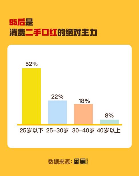 美妆天然有潮流属性,意味着新品市场背后的二手市场巨大。闲鱼数据显示,2019年美妆交易量已破50亿;从城市看,上海、北京、广州、深圳、杭州交易量最大;而从人群看,在校生、初入社会者构成的95后是绝对消费主力,买走了52.8%的二手口红。有意思的是,购买者中,还11.6%是男生。