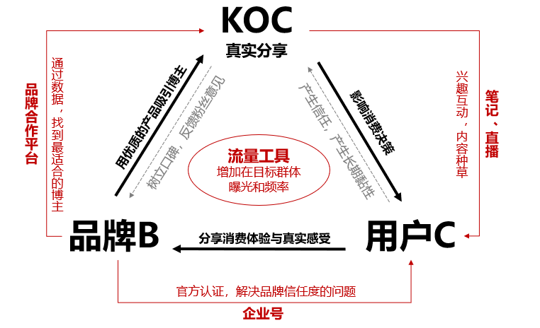 在小红书平台上,拥有超过3000万KOC(Key Opinion Consumer)。品牌通过影响KOC在社区树立口碑影响用户的消费行为,用户通过分享消费体验,再反向影响品牌和其他用户,形成正循环。这表明,品牌的内容营销将从KOL共创逐步走向消费者众创。
