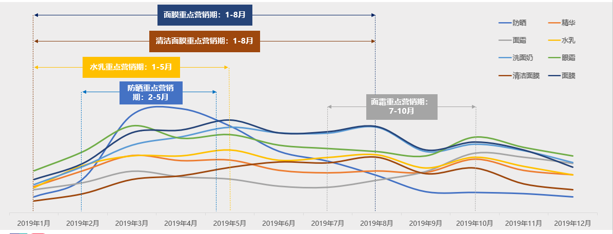 小红书上的海量数据也成为品牌推广和策略制定的参考依据,比如从小红书的搜索趋势可以看出,用户对防晒的需求从2月就开始升温,2月到5月可以作为防晒产品重点营销的月份;而从7月夏天时,不少用户已经开始搜索冬天用的面霜产品,这一热度在7-10月份出现明显涨幅。