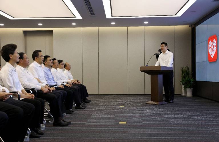 ▲8月21日,上海市委书记李强(左二),贵州省委书记孙志刚(左三),贵州省委副书记、省长谌贻琴(左一)等沪黔主要领导赴拼多多考察。拼多多CEO陈磊就公司发展作相关汇报。(安舜 摄)