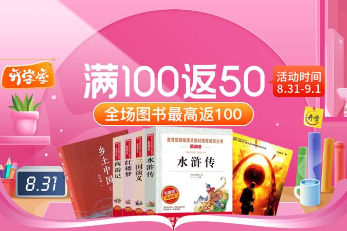 据悉,拼多多图书商品“满100返50、满200返100”活动将从“开学季”期间的8月31日正式开始,优惠覆盖教辅、作业本等开学必需品。此外,古典名著、经典小说、历史读物、绘本漫画等众多图书商品也都将纳入优惠范围。