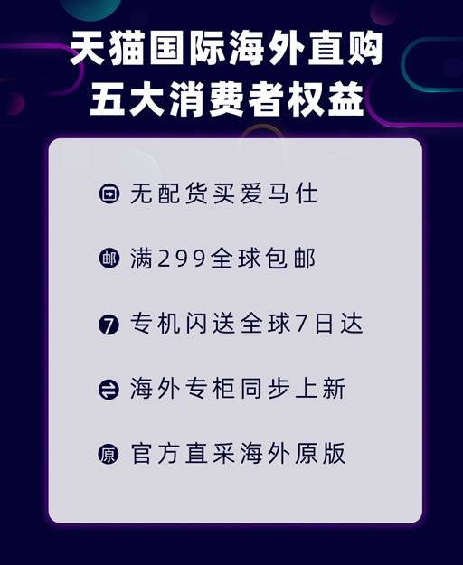 天猫国际“海外直购”利用遍布全球的海外仓库,为国内消费者提供海外直邮服务,基于菜鸟全球仓储布局和构建全球供应链网,通过官方直采的形式,将海外最新发布的潮流新品、限量版尖货,直接面向中国消费者上架销售。