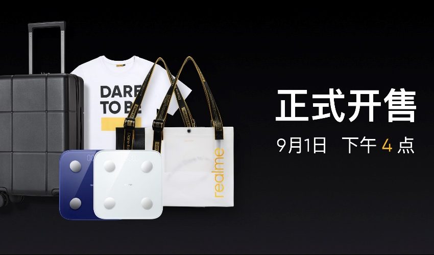 此次发布会上,realme带来了五款潮玩新品:体脂秤、托特包、旅行箱、及纪念版T恤衫。